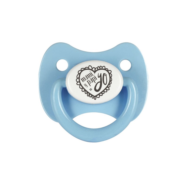 Chupete "corazón papi + mami" está diseñado con un bonito corazón calado y el texto: mami + papi = yo.