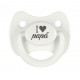 Chupete I love papá; elije el color de chupete y el tipo de tetina que más te guste y haz que tu bebé desmuestre todo lo que quiere a su Papá. Gracias a su diseño, evita la acumulación de saliva en la piel del bebé, consiguiendo que la piel no se irrite.