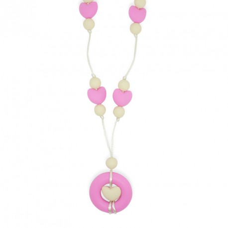 Los tonos rosas y cremas del collar de lactancia rosa con corazones son ideales para momentos en los que queremos entretenerle, e incluso calmar sus encías en la etapa de dentición. Fabricado en silicona alimentaria antibacteriana, libre de BPS y ftalatos es el complemento y regalo perfecto.