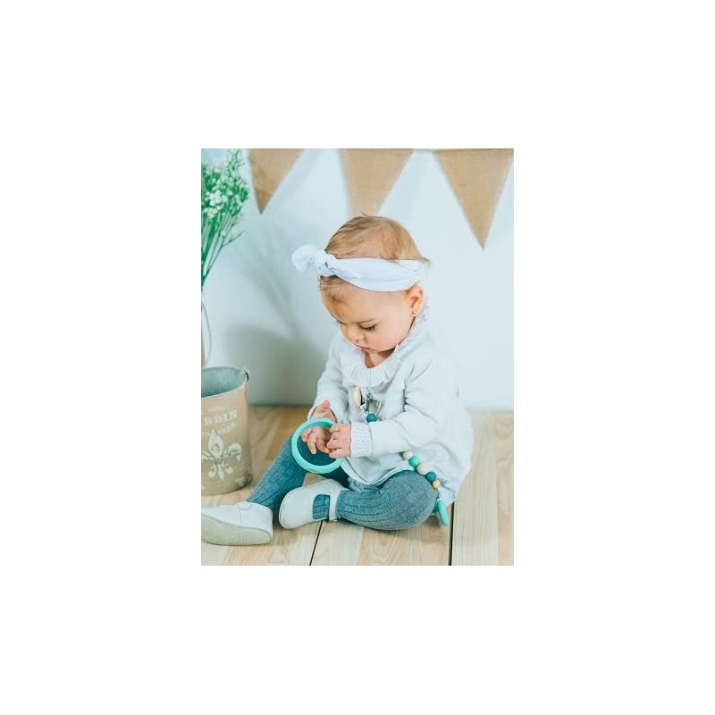 Su forma sencilla a modo de mordedor es perfecta para calmar las encías del bebé.