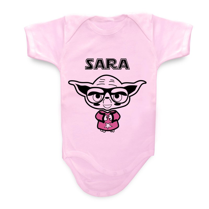 Personaliza el body de tu bebé con la frase de Joda "Que la fuerza te acompañe" de StarWars. Selecciona la talla que necesites y el color que más te guste.